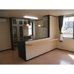 中古物件ご購入にともなう全面改修工事(全工事金額¥12,000,000)のうちLDK改修工事のご紹介です。 L型キッチンに対面式に収納部がある配置を、対面I型キッチンにし、背後に収納部を設けております。 キッチンのカラー、床、壁、ドア、木部の色合い等トータルでコーディネートしておりますので統一感があり、明るく広々としたリビングを演出できたと思います。