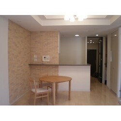 ダイニングテーブルを置く位置に合わせてコーナーに施工することで、広いダイニングのアクセントになりお部屋の中が引き締まりました。