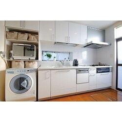 ご要望が明確でしたので洗濯機はキッチンの脇に移動して水まわり空間を広くしました。