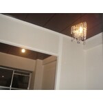 本来隠す素材バリアヘルスコート(墨を原料とした防臭・除湿材)をあえてみせることで、インパクトのある仕上がりになったと思います。お客様もいろんなアイデアをだしてくださり、勉強にもなりました。天井の一部を黒く塗るというのは初めての試みでしたが、なかなかの仕上がりに、お客様も喜んでいただき、うれしいです。照明が映えてとても雰囲気があります。