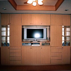 表面材がポイントなので小さなサンプル帳ではなく、現物サンプルを提示しました。収納したい物がわかっていたのでそれらに合わせて棚、扉を構成しました。何回も図面を提示して決定したのでほぼ希望通りの完成品となりました。