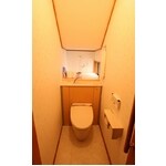 (平成29年4月1日 体制変更以前の(旧)永大プランニングの実績です)奥行きが2メートルもあるトイレ。階段下にある為、便器が真ん中に・・・。 後ろの空間がデッドスペースになっていたので、棚を造作し花を飾るなど、有効活用できるようになりました。 床もクッションフロアから、大理石調のフローリングへ。 ナチュラルテイストの素敵なトイレ空間ができました。