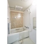 落ち着きのあるアクセントパネルが映えるシステムバス