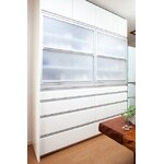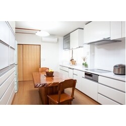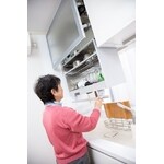 普段はお二人でのんびりと・・・、お子様やお孫さまが遊びに来たら大家族。 そのため、たくさんの食器や調理器具があり収納のきでるキッチンにリフォーム! 食器乾燥庫タイプの昇降式ミドルウォールで収納部を使いやすい位置まで降ろし、洗った食器やまな板をセットし電動で上昇させてそのまま乾燥・収納できます。