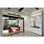 ご両親から譲り受けた家を、息子さん家族が暮らしやすいものにするための全面リフォーム工事をご依頼頂きました。 家族と対話できる対面キッチン、勾配天井を活かしたロフト、趣味のガレージなど、お客様との打合せは大盛り上がり。 モノトーン主体の中、随所にアクセントカラーを入れ、落ち着きの中にも洒落っ気のある空間となりました。