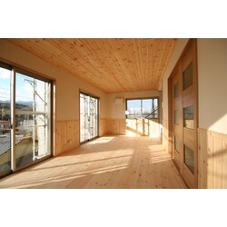 木目が美しいフロアーと珪藻土仕上げの内壁の廊下