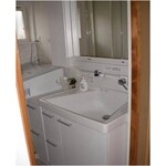 浴室の戸と洗濯機の間が50cm程度しかなかったので、洗濯機と洗面台の入れ替えをご提案しました。浴室はもちろんシステムバスに取り替えました。洗面脱衣室の空間サイズは変わっていませんが、以前より広く感じていただけました。ありがとうございました。