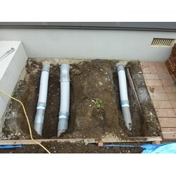 今回の工事は地盤沈下による排水管の破損防止工事をしました。