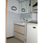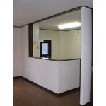 対面式キッチンでカウンターの上に吊戸棚がありましたが、 吊戸棚を外し、さらに開放的な明るいLDKになりました。 あわせて洗面スペースもリフォームしました。