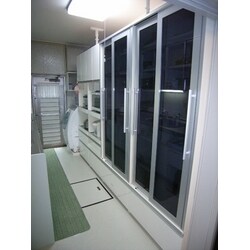 流し台の老朽化にともなってリフォームを。 流し背面には昔風の食器棚が置いてあり使い勝手が悪い状態でした。 収納を充実させるのが今回のリフォームの一番の目的でしたので背面収納にはこだわりました。 通常流し台と同じメーカーの物を使用するのが一般的ですが、家具メーカーの組立式を設置。 大型引戸で使いやすく収納量も大幅に増え予算的にも納得の商品でした。