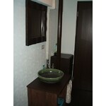 和風のイメージを強く希望されていたので、床の色に合わせたカウンターに洗面ボウルを設置。味わい深いある陶芸の意匠が和の趣を感じさせます。