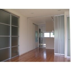 来客の多いお客様だったので、食事の支度や後片付けなど、孤独で寂しかったそうです。そこで、ダイニングキッチンとリビングの間の壁を取り除き、ワンフロアで開放的なLDKにすることをお勧めしました。また女性の1人暮らしなのでドアは全てアクリルを使い人影が見えるようにしました。暖房効率を落とさないためにダイニングとリビングの間には開閉壁をつけました。
