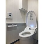 手洗い器用の給水・排水配管がなかったので新規に配管工事をしました。タンクレスの節水トイレなので見た目もすっきり。 お掃除のしやすいトイレ空間です。