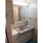 洗面台と三面鏡は幅が広いため、搬入と設置するのがちょっと大変でしたが、無事工事が終了しました。