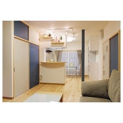 リビングのど真ん中にあんな大きな押入を作ってしまって、どうして建てる時に あんな設計にしてしまったのか未だにわかりません。 若い頃は仕事や子育てに追われる中、家を建てたので、あまり設計に関心が なかったんでしょう。 今回のリモデルは、仕事も退職して第2の人生を楽しむ為に思いきってリモデル しました。とにかく押入を撤去してリビングを広くしたい!憧れの対面キッチン にしたい!この2点が特に大きな要望でした。素人の考える対面キッチンは、リビ ングに対面してキッチンをで~んと置けば良い。と思っていましたが、Yさん のアドバイスで、L型のキッチン、その他の家具の配置や収納力の事を考えてくれた プランが、大変、気に入りました。また大きな押入を撤去するのは良いですが、 その中身の物を今度はどこに収納しようか悩んでいました。ですが、邪魔にならない 場所に収納を持って来て、また建具を市松模様にしたりと、いかにも“収納”と 思わせないデザインがとても斬新だなぁ。と関心しています。また色合いも素人なの でどうなるかと思いましたが、シックで落ち着いていてとても気に入っています。