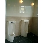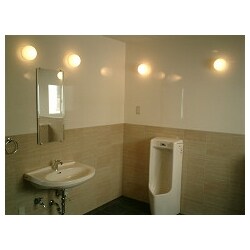 3工場のトイレを全面改修させて頂く事になりました。 今回のトイレリフォームのコンセプトは、“いつも清潔に保てるトイレ”床、腰壁共 300角のタイルを張り、腰壁から上はアイカタフウォール(表面がツルツルした メラミン化粧合板です)を張ります。汚れが付いてもお掃除しやすい材質で、 色合いも落ち着きのあるベージュ色を採用しています。 床、壁のタイルとセラール(腰壁から上) の色合いが高級感を出しています。 設備機器も最新機種を採用しています ので、手を使う事なく自動で洗浄出来 ます。 清掃面を考えての機種選択です! 小便器前と洗面台前のまるっこい照明 もポイントになってとても良い感じです。