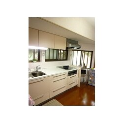 台所の改修工事をさせて頂きました。 昔土間だったスペースに床を上げて台所スペースを取っていました。改修のきっかけは、 一部、床がボコボコしてきた事と台所前のタイルが剥がれかかってきた事が原因です。 既に据え置きタイプのIHをお使いになられていたK様ですが、システムキッチンになった場合、 据え置きタイプは再利用できないので、IHもビルトインタイプに新しく取り替えする事に・・・ 今まで使っていたIHはリサイクルショップで引き取ってもらったそうです。 台所を据え付ける位置は丁度、天井高が低い為に通常の換気扇や既成の吊戸は取り付け できないので、リフォーム用換気扇と吊戸はキッチンの扉に合わせてオーダーメイドしました。 部屋の状況によっていろいろと対応できる商品も出ているので、「ここには取り付かないかも?」 と思っても取付けできる場合があるので、是非、当社にご相談下さい!