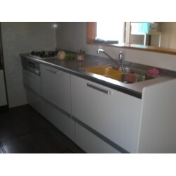 <リフォーム前の悩み> 1.キッチンの掃除がしづらい(特にガスコンロ、タイルなどの油汚れ)2.キッチンが暗く手元が見えづらい <リフォーム後> 1.ガスコンロや壁など前よりフラットになり前より掃除がしやすくなり油汚れも落ちやすくなりました。2.吊戸棚など扉を明るめの色にして照明のワット数を増やしてもらい、とてもキッチン全体が明るくなりました。