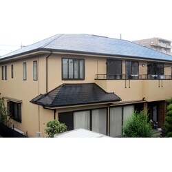 外壁の傷んだ部分をエポキシ系樹脂で保護し、シーリングも打ち替え無機マスターズコート塗料で仕上げました。屋根はサーモアイ遮熱シリコン塗料で仕上げております。お客さまにも大変喜んで頂けました。