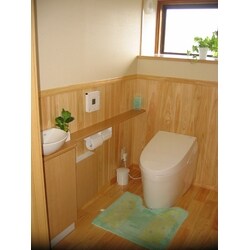 つかいづらい昔ながらのトイレを一つにして、快適に使いたい。とご依頼を受けお見積り、ご提案させていただきました。 トイレはTOTOのハイブリッドタンクレストイレ ネオレストAH1です。ご自宅が和風造りの為、オシャレなタンクレストイレを使いながらも 腰板に無節のヒノキを張る事により、家に合う高級感を演出しました。トイレを広く作る事により手洗カウンターも設けました。ご主人、奥様共に喜んで頂いてます。 工事内容に大変ご満足頂いたので、システムバス工事も後日させて頂きました。お話し好きのご主人がとても印象に残っています。