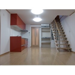 ご主人様の寝室を確保しながら、みんなが集えるリビングです。 スリット階段と間仕切引戸を設置することで、広々とした空間になりました。システムキッチンのカラーがとてもいいアクセントになっています。 耐震のことも気にされていたので、耐震補強もさせていただきました。