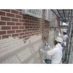 レンガ調の外壁を、目地のデザインからパターン付けて塗装しました。塗装色は事前に試し塗りをして打ち合わせしました。傷んでいた外壁も補修してひび割れが目立ちにくくなっています。