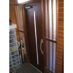 木製ドアは塗り替えが2~3年に一回程度は必要だった為、維持が大変でしたが、今回は丁板がダメのようなので、思い切って取り替えていただきました。金属製でもデザイン的には天然木のようですし、軽い為、開け閉めが楽になりました。