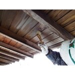 今回の軒天のように木目の見える化粧垂木などの木材の塗装は、基本的にはクリヤーの塗料を使用しますが、腐食などが進むと、色付の塗料で塗りつぶす必要が出てきます。 鉄部と木部については、外壁などとメンテナンスのサイクルが異なるため、ご注意下さい。