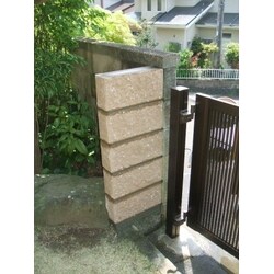 古いコンクリートブロック(CB)のため、内部鉄筋が現在のものより細い可能性がありグラついていました。今回は簡易補強として、側面に袖壁を作り、倒れ込みを防止する補強を行いました。