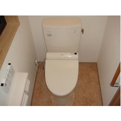 ご主人の体のことを考えて、浄化槽にして、トイレを和式から洋式にして入口は引き戸にし、段差をなくしてバリアフリーにしました。トイレの床は、クッションフロア、壁・天井はクロス仕上げ、便器は『TOTO ピュアレストQR』にして、手すりを取り付けました。これからは、広くなったトイレで快適に使用してください。