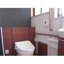 仕切りの壁を取ってひとつのトイレの空間にしました