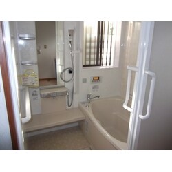 奥様は足が不自由で、タイルの床では転倒の危険があり、又、冬場の浴室の寒さに困っておられました。 バリアフリーのユニットバスに交換し、浴室内に可能な限り手摺りを設置し、転倒防止対策を施しました。 照明には、長寿命のLEDを採用し、電球交換のサイクルを考え提案しました。 住宅エコポイント並びに、高齢者のバリアフリーリフォーム工事に伴う固定資産税減額の申請手続きも代行して行いました。