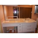 在来工法(タイル貼り)の浴室で、寒いことでお悩みでしたので、システムユニットバスでの保温効果と、さらに効果を上げる為に壁との間に断熱材を入れる事や特殊塗装(断熱、防音、結露防止)をご提案させていただきました。 また、使い勝手の悪かった洗面所は、お客様のご希望から、幅2m超のゆったりしたものを設置して、パウダールーム、作業カウンターとして使用できるようにリフォーム致しました。
