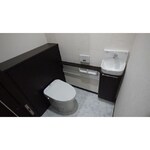 手洗い器のあるスッキリとしたデザインのトイレへ