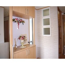 玄関に入って正面の壁なので、明りやデザインを考慮して仕上げました。