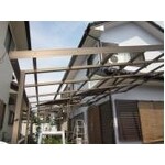 (旧株式会社アトリエ住まいるでの事例です。)テラスの屋根材が破損したので、取替えのご依頼がありました。強い材質のご希望がありましたのでポリカ材をお勧めしました。以前に比べ、明るくなり、また取付用フックも多く使用しましたので、お客様もご安心なされました。
