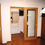 既存が事務所だったそうで、水廻りの位置離れに伴う給水給湯管工事。特に排水管のコースと床高の設定などに苦労しました。 最終的には、ご満足していただけるリフォームになったのではないかと自負しております。