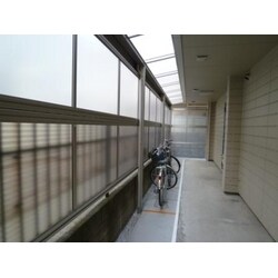 駐輪場がなかったため、アパートの住人は玄関前通路に自転車を停めており、通行の妨げになっていました。そこで、建物と隣地との隙間に駐輪スペースを設置することに!まずは、コンクリートで段差を解消。屋根付のフェンスを設置することで、雨が降っても心配無用な空間に。採光もしっかり確保される仕様にリフォームしました。