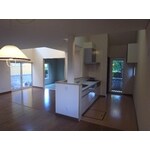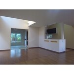 ○両方の家に挟まれて日がさしこまないので、キッチン上に天窓、居間には吹き抜けを設けて家全体を明るくしています。 ○大きな間取り変更はないものの、キッチンの向きを変えて開放的にして、一部増築することで、収納量をアップし、使いやすくしています。