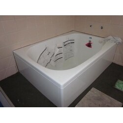 (旧株式会社アトリエ住まいるでの事例です。)浴槽が傷んで来たので、最新型の浴槽に取替えて欲しいとのご要望があり、真っ白な人造大理石浴槽をご提案させていただきました。同時にタイルも一新して浴室内が明るくなり大変喜んでいただきました。。
