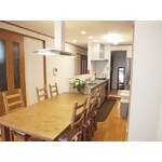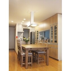 リフォーム前は2階に縦長のLDKで隅にL型のキッチンという間取りでした。 ご家族が多いので洗面と洗濯機を2階に持って行きたいというご要望でしたので、キッチンを対面にして後にカップボードを持ってくることと、その奥に洗面・洗濯スペース兼パントリーの空間を作ることで、大容量の収納スペースを確保できるリフォームをさせていただきました。 ダイニングテーブルの上に付けた換気ライトは、照明と換気の2つの機能を兼ね備えた優れもので、ご家族で焼肉やお鍋をすることが多いお家では大活躍です。デザインも何種類かあり、ちょっとしたお部屋のアクセントにもなります。