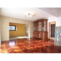 中古戸建購入をきっかけに大規模にリフォームをされました。お客様は明確なイメージをお持ちで、そのイメージに合った物をサンプルを取り寄せながら、確認していく作業でした。特に床材は花梨の無垢材でヘリンボーン貼り(矢羽貼り)が出来る物を10数社から取り寄せ、現地で着色塗装をして仕上げました。また和室側の壁は大理石をモザイク状に細かくした物を使用し、和室との間仕切りにアクセントを持たせました。その他の天井と壁はビニールクロスの上から塗れる特殊な珪藻土を使用。その中に色ガラスを細かく砕いた物を混ぜ込み、クロスの上からローラーで塗りこみました。お陰で細部までこだわったお気に入りの家が出来上がり、お客様には非常に満足して頂けました。
