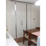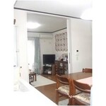 キッチンとリビングの間仕切り壁のおかげで開放感がなかったのですが、強度的に必要な壁でしたので建具部分の垂れ壁だけを撤去して、天井までの大きな引き分け建具に変更しました。またキッチンの色も吊戸棚だけ色を明るくし圧迫感を少しでも減らすように心掛けました。お客様にも開放感だけでなく、扉で間仕切れることによって冷暖房の効率もよく、明るくなってよっかたと喜んでいただけました。塗装が大変な木製玄関ドアも、軽く光も入るアルミのドアに交換しました。