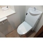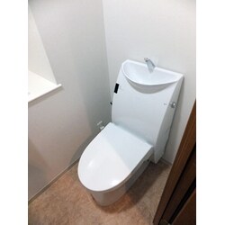 【最新の機能と節水タンクレストイレ】 手洗器部分は特殊コーティングで汚れが付きにくく、お掃除が ラクラクです。 受け皿の深さもあるので水の跳ね返りもしにくい構造です。