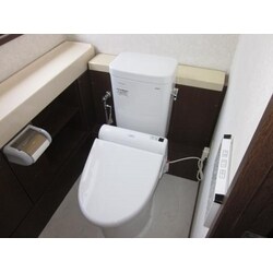 (旧株式会社アトリエ住まいるでの事例です。)最新の節水トイレ機器をご提案させていただきました。当初は1Fだけのご予定でしたが2Fも古くなっていたので、思いきって2セット取替えました。床のCFも貼替えてとても明るいトイレ空間が完成しました。お客様も大喜びでした。
