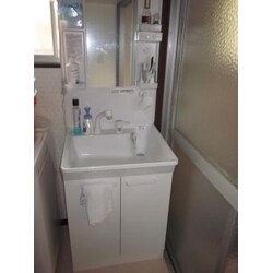 (旧株式会社アトリエ住まいるでの事例です。)洗面台が使いにくいとのご要望をお受けしまして、現状の配置を見直して一体型の洗面化粧台を設置する事ができました。取付後はとても便利になったと喜んでいただけました。