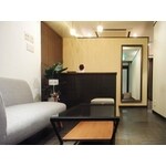 見えない所は低コストに抑え、内装や間取りにこだわりました。お施主様のご希望のオレンジ色の壁紙は、全面ではなくホワイトとオレンジを面で貼分けることにより、空間にアクセントを付けました。 床には籐調のフロアタイルを用い、素足でも踏み心地の良い素材を選びました。限られた空間の中で、収納やストックルーム、動線などシュミレーションしながらどこに何を置くかなど、打合わせに打合わせを重ね、使い手にも優しいこだわりのサロンが出来上がりました。