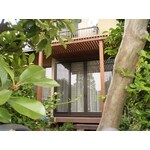 「夏に向けて、南側のテラス窓に日除けになるものを作りたい。」と、相談しました。 庭の雰囲気にあった仕上がりに満足しています。早速、ネットを取付け、ゴーヤを這わせました。緑のカーテンになるのが楽しみです。