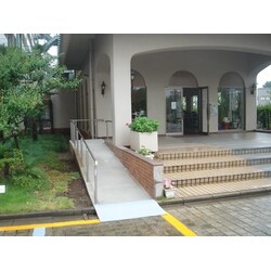 マンション入口に障害者用のスロープを設置しアプローチの不便さを緩和