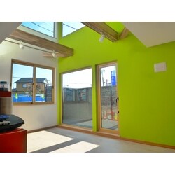 - 吹き抜けの明るいリビング